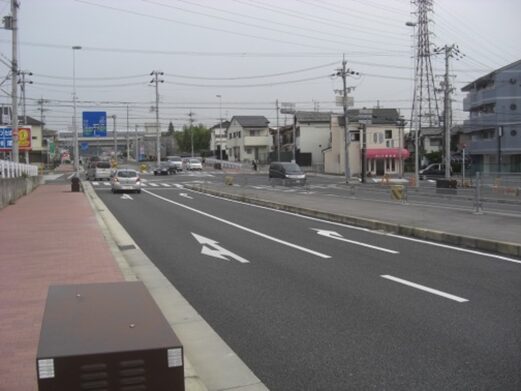交差点手前の歩道橋より今きた街道方面を見る