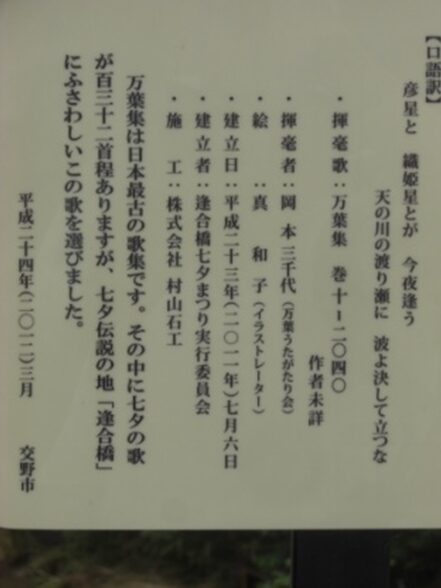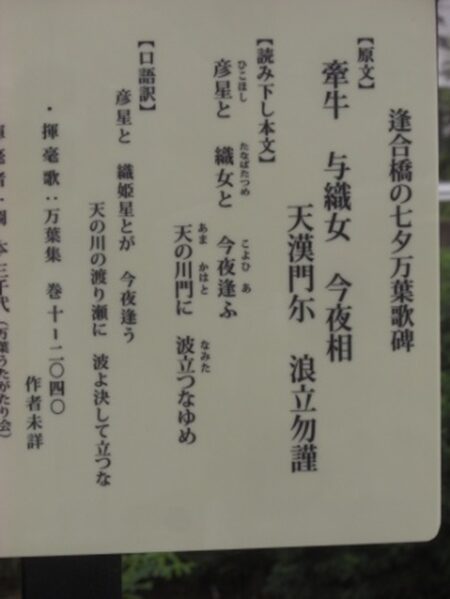 逢合橋の七夕万葉歌碑