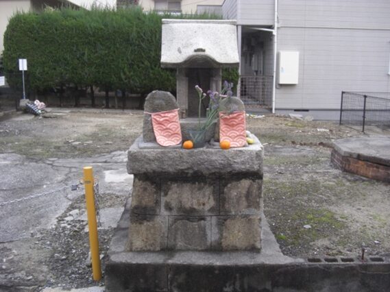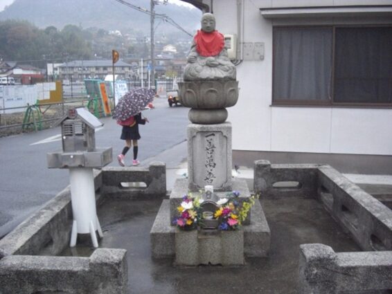亀齢酒造と西条鶴酒造の間を右に入ると お地蔵さんと祠