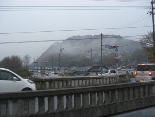 良い天気ならいいのだが 新高山城址、切り立った山で攻めるには非常にむつかしい