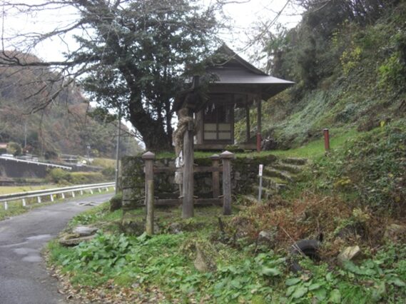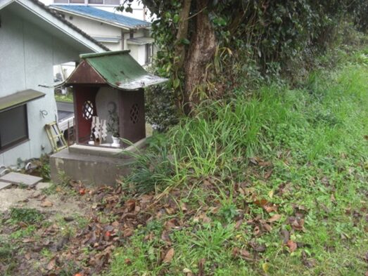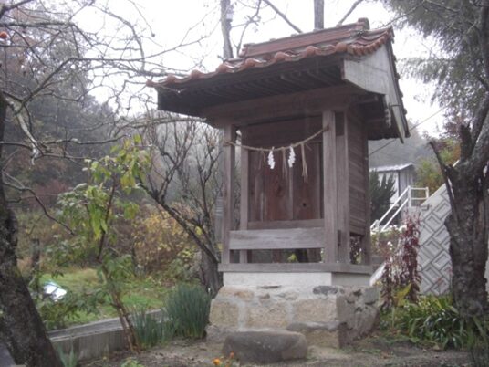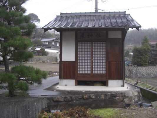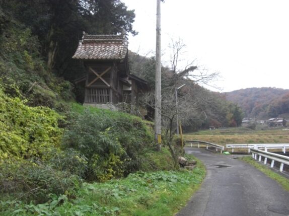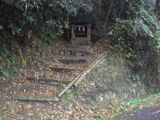 すぐ先左にカーブしたところを右に少し入ると 荒神社