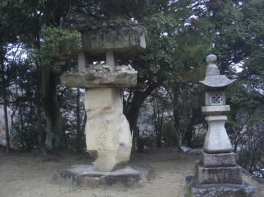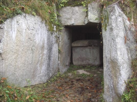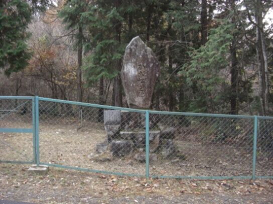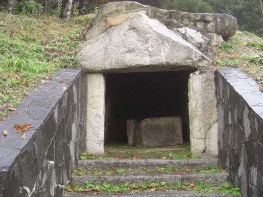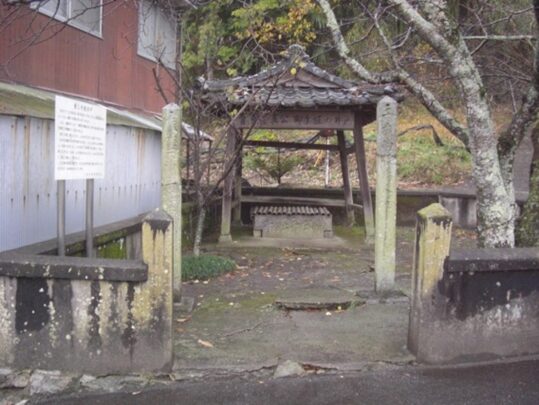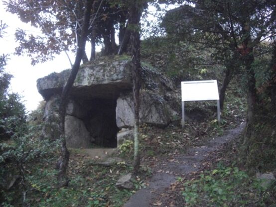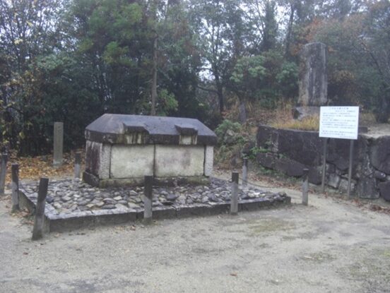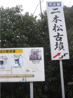 境内に 二本松古墳の石棺 があります石材は流紋岩質擬灰岩で兵庫県高砂産の龍山石です。石棺に蓋石の形状で家形石棺です縄掛突起があります