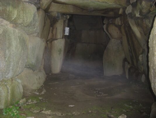 横穴式石室墳として唯一国史跡に指定されています、石室内は2基の家形石棺を納める他の例を見ないという。古墳付近は開墾されており墳形式が確定されていないが、方墳であったと推定。築造時期は7世紀半ば以降と推定されています。