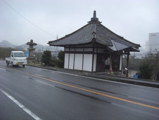 本郷橋東詰信号交差点手前左に 大師堂と前の錦山神社