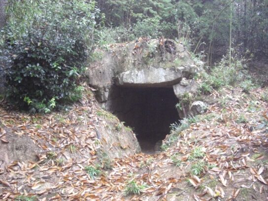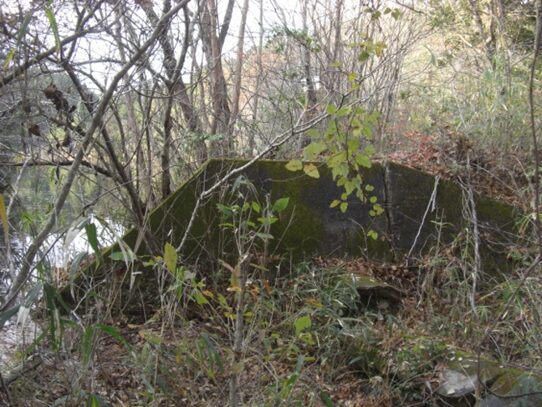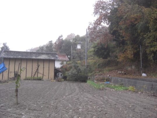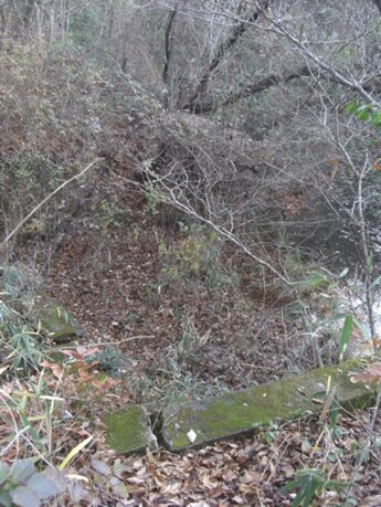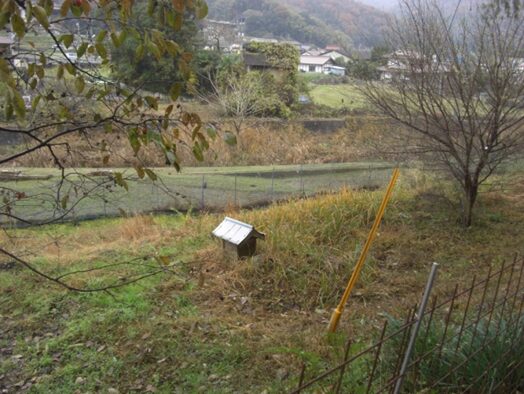 梅木平(1号)古墳南の南西下の民家の西端に半壊した 横穴式石室(梅木平2号古墳)があります