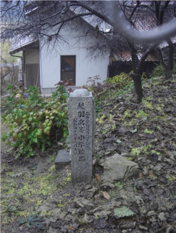 祠の少し先左に 梨羽高等小学校跡の碑 があります