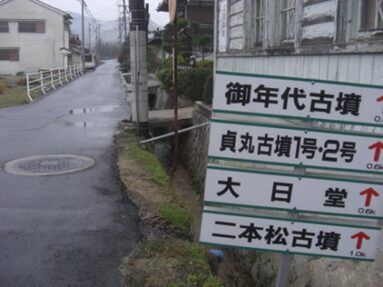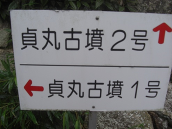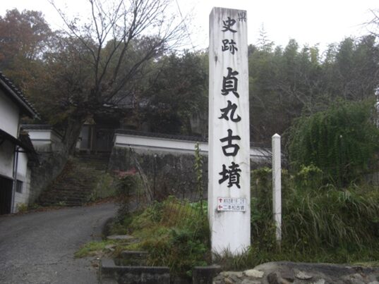 御年代古墳から300m程先を進むと右に「史跡 貞丸古墳」の看板があります