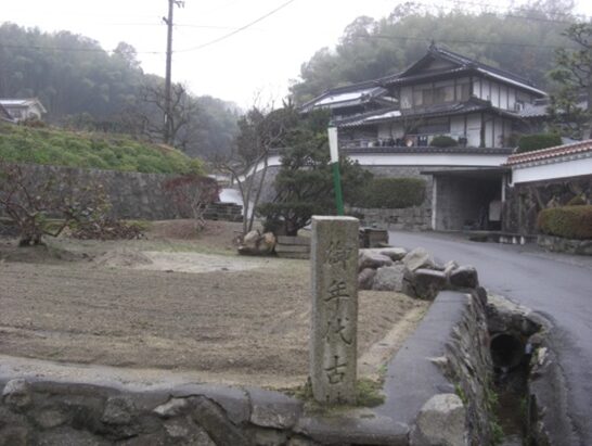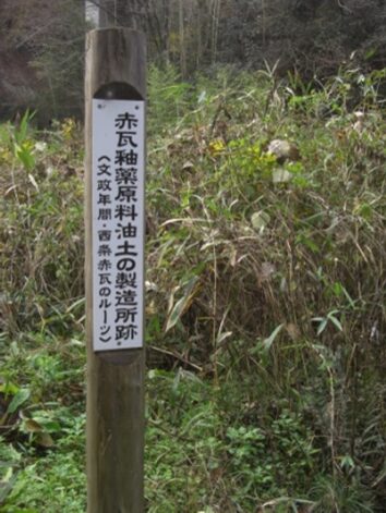 この写真の位置が何処かチョットわからない、右にあったようです 赤瓦秞薬原料油土の製造所跡 文政年間:西条赤瓦のルーツ