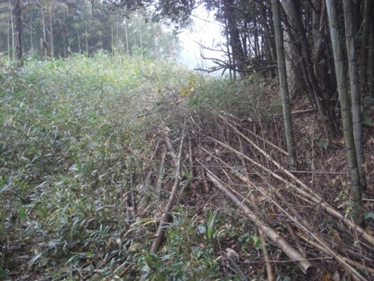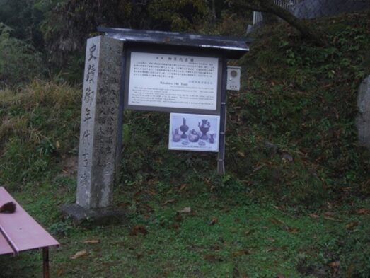 この古墳周辺も開墾されていて墳丘の区別が難しいそうです。墳丘も壊れそうなので土を盛って修復されたようです。古墳は1号と同じく7世紀前半頃のもの