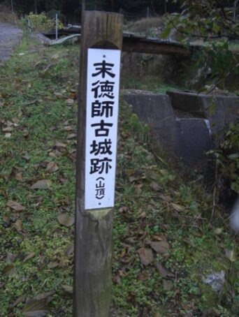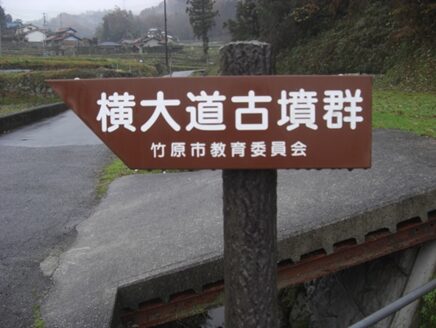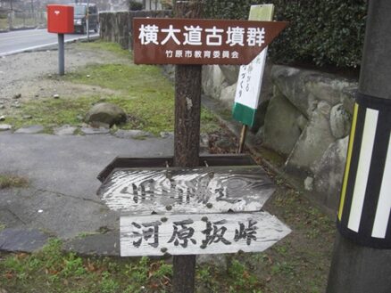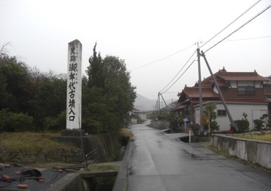 郵便局の少し先に 「史跡 御牟代古墳入口」の案内看板