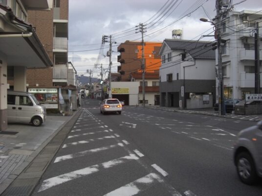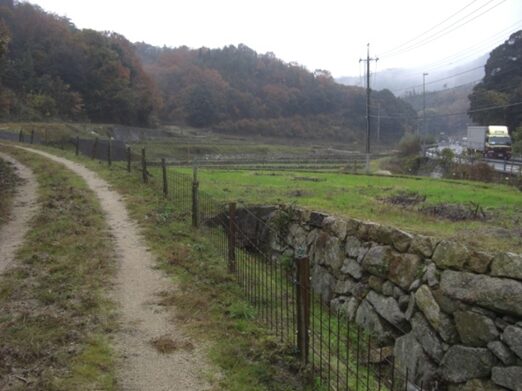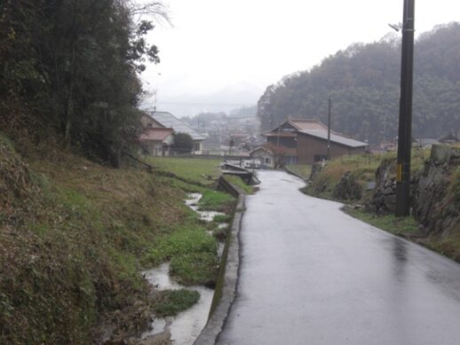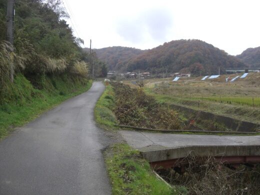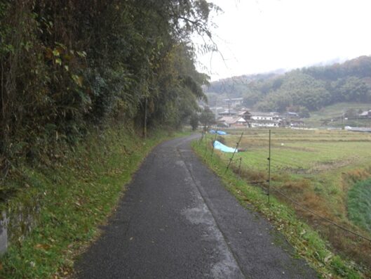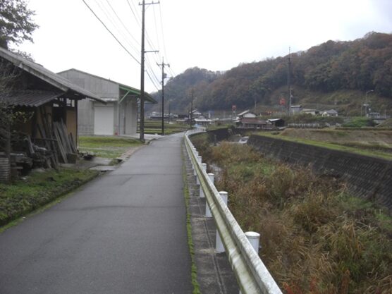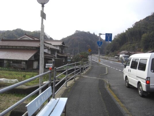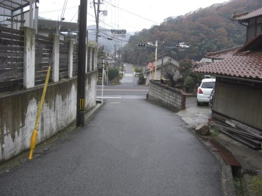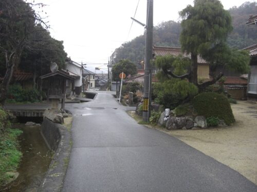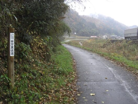 この付近で 田万里往還(山陽道) が終わりです振り返ったところ、左に案内表示