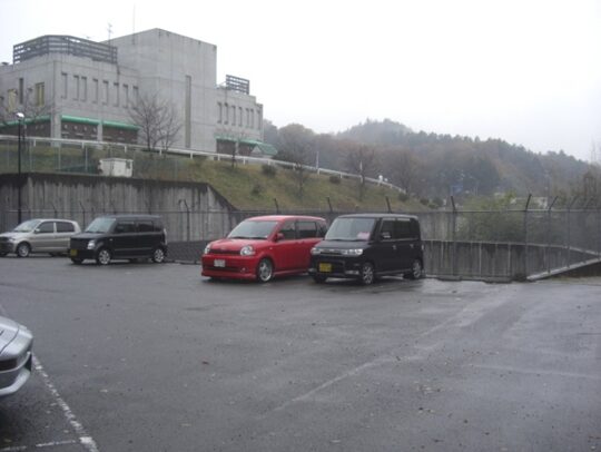 トンネルを越えて真っ直ぐ西に進む少しの間舗装された細い旧道があります。車が二台道を塞いでいます、何をしているのだろうか。