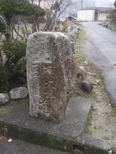 正面左に欠けた 道標 「左 竹原 右 四日市」