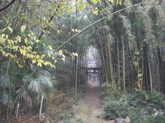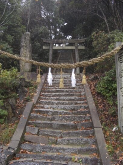 貞丸古墳から街道に戻り暫く進んでいくとこんもりとした杜が見えてきます