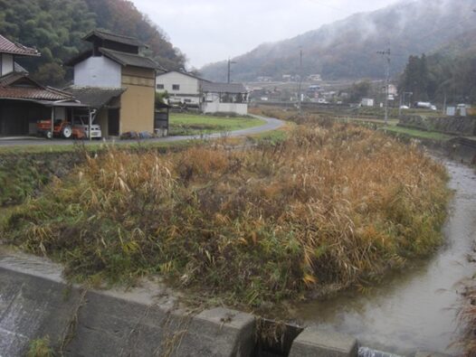 本郷町上北方地区に入るとやがて宮地川が右に梨和川、左に尾原川が分流しています。