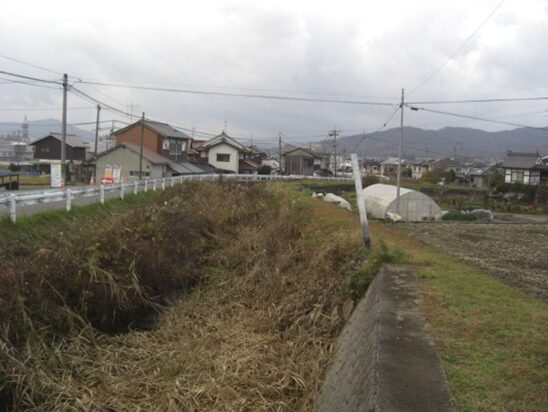 交差点を越えて街道は少し右斜め(北西)に方向を変えて進む、左にサムエル西条保育園を見て100m程進むと、中川に架かる橋を渡ります、西条(旧四日市)の市街地です