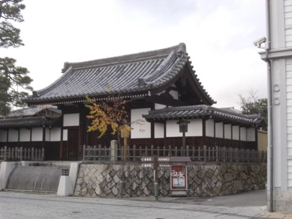 四日市(御茶屋)本陣跡 立派な本陣門、本陣に向かって右奥に 賀茂鶴酒造が見える