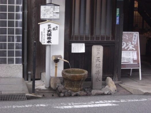 西条鶴酒造の前に 「江戸天保井水」碑 江戸時代の天保年間に掘られた井水