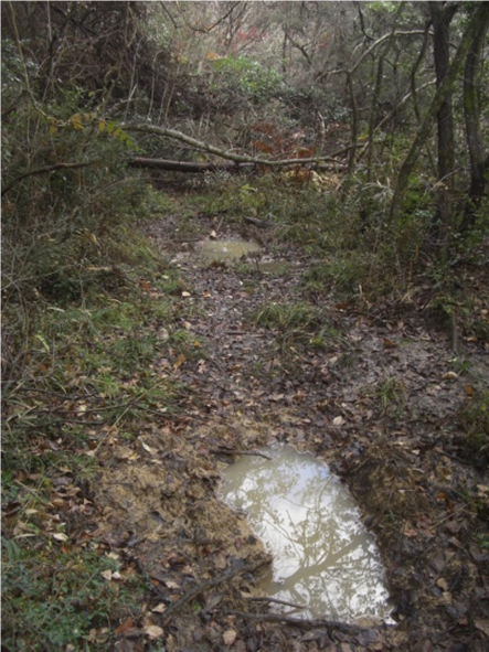 水溜まりは酷いですが、それ以外のところも枯れ葉で分かりませんが何処を歩いても、足がぬかるみます