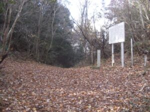郵便局の少し先に 「史跡 御牟代古墳入口」の案内看板