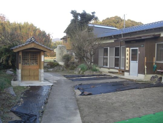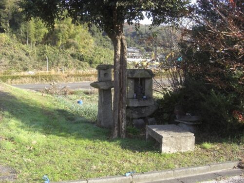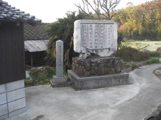 その先50m程西に入ると西原集会所があります。その敷地内に 誕生の地碑と辞世の句と祠
