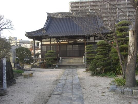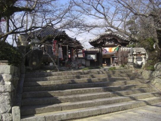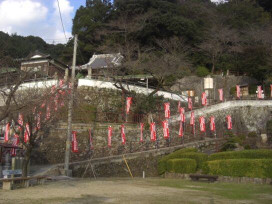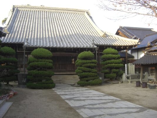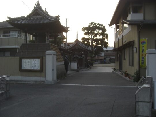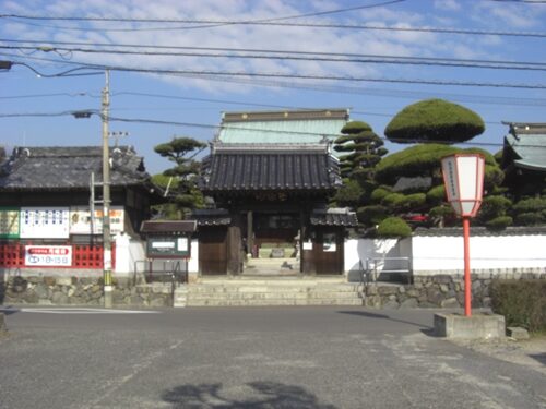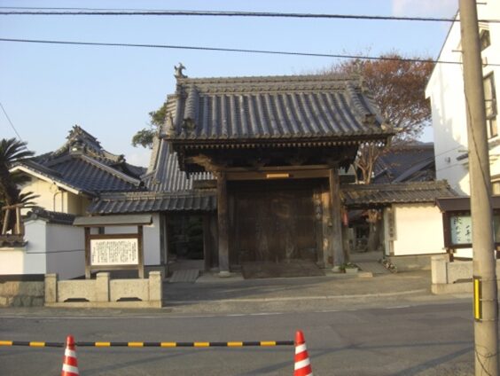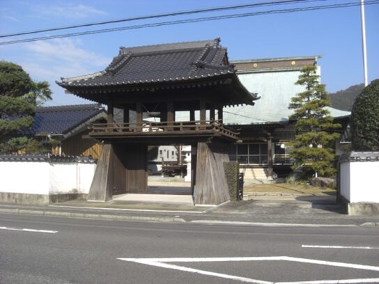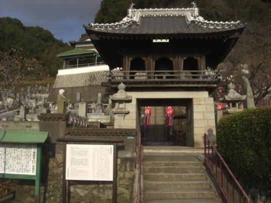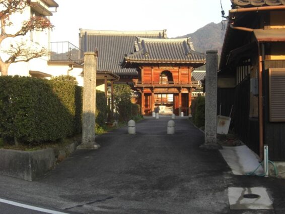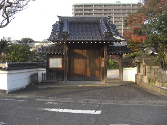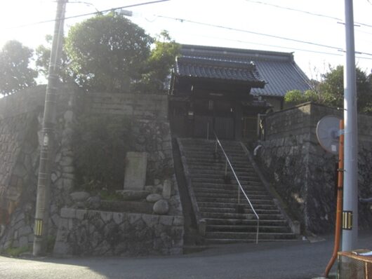 南北朝時代、1350~1370年代に瀬戸内海の屈指の港町富田市の東端に大内氏の重臣陶弘政によって建立された時宗の寺院。寺の境内は、寺院でありながら、寺の周囲を堀が巡らされ、出城的な城郭寺院であった。堀はすでに埋められているが、土塁の一部が残存している(写真に土塁が撮れていない残念)