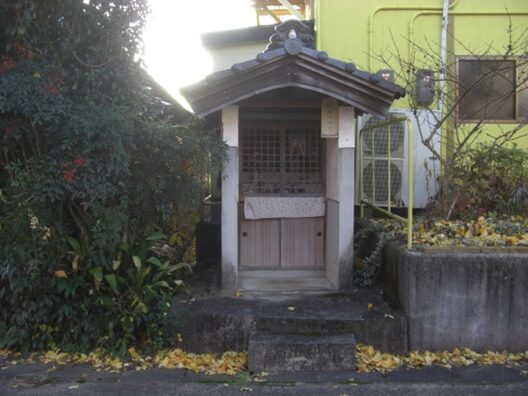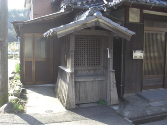 少し進んだ右に 恵比寿さんと大黒さんを祀る石の祠 傍に小さな石碑
