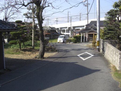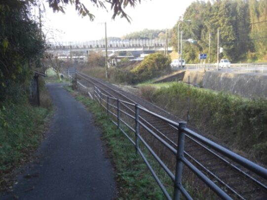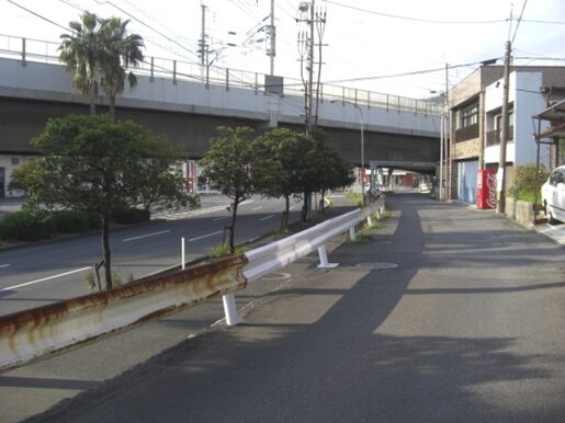 かつての旧道は前述の竹藪を抜けて今国道に出てきた、岩徳線の線路の高架の手前に出て、そのまま真っ直ぐ線路に沿って200m程進んでいたようです。その旧道跡のような道が残っています。
