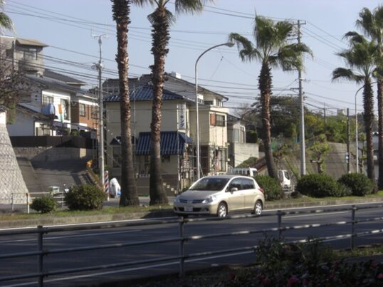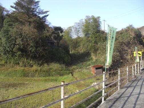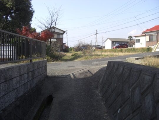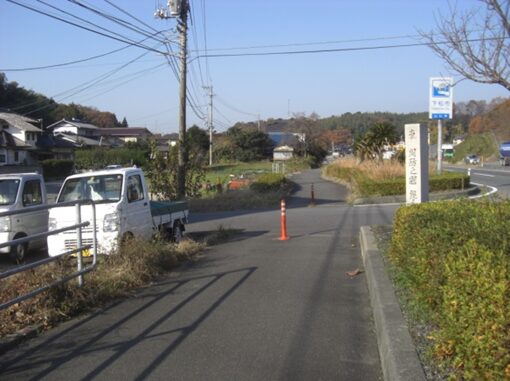 その先2号線を暫く進んでいくと、遠見信号交差点と小川を渡り、信号で2号線の右側に横断しておきます。信号の先すぐ右に入る細い旧道があります。その左に 遠見の一里塚跡 ですがなにも痕跡はないです