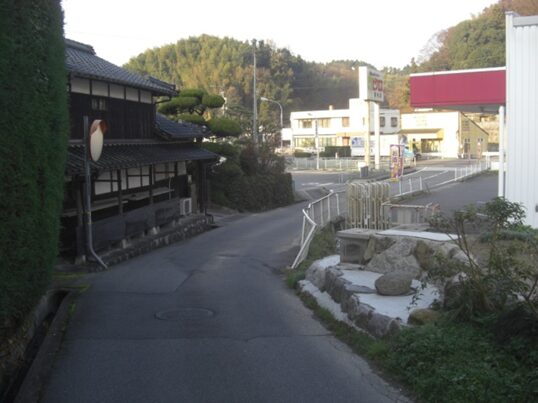 西町の高札場辺りが宿の西端になり、街道は十字路から上り坂で古市坂と呼ばれた難所でした。街道は十字路を越えて150m程先で左にカーブします