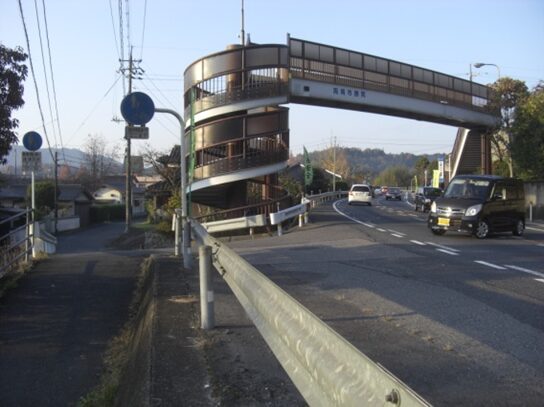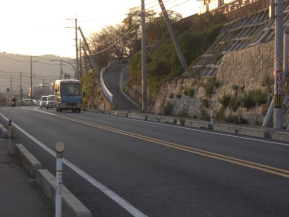 2号線を進みます、前方に山陽自動車道の高架が見えてきました。坂道を登っていきます