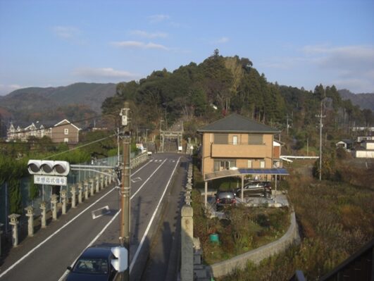街道は真っ直ぐ進みますが【寄り道】をして、交差点を右に折れ2号線を横断して北正面に見える、切り立った山の山麓にある、熊毛神社に寄ってみます