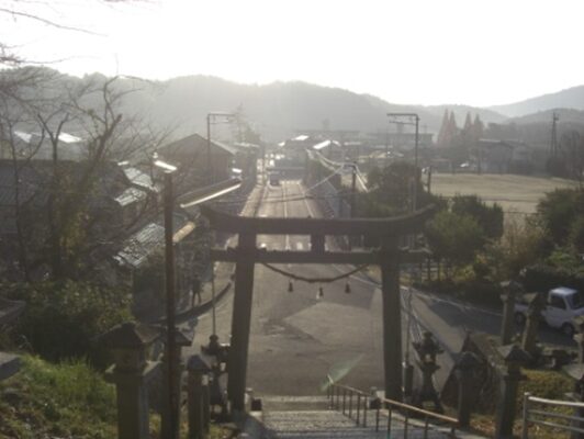 山崎八幡宮から南の瀬戸内方向を見る正面は 宮の前流鏑馬場跡