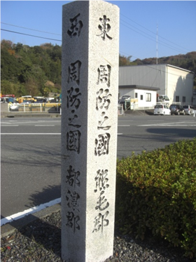 左に入った右角に 郡境碑 「東 周防之國熊毛郡 西 周防之國都濃郡」碑