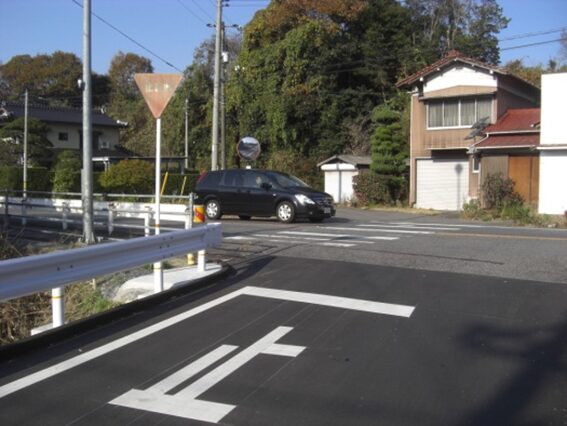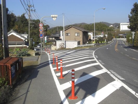 暫く歩いていくと、2号線の峠市の信号交差点で左に分岐してきた道路に出ます、道路を横断して少し入り左にカーブすると、すぐ左からの2号線に合流します