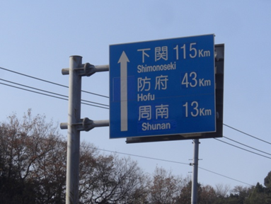 左の2号線にすぐ合流したところで道路標示があります、下関の名前が出てきましたがまだ115㎞もあります