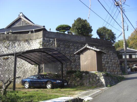 久保市橋を渡った先の久保集落の街並みを進むと、右に立派な旧家が建っています