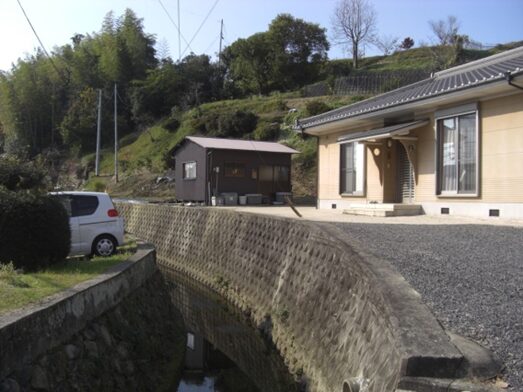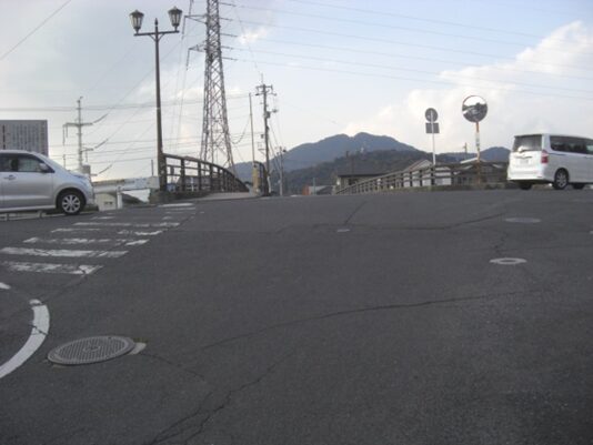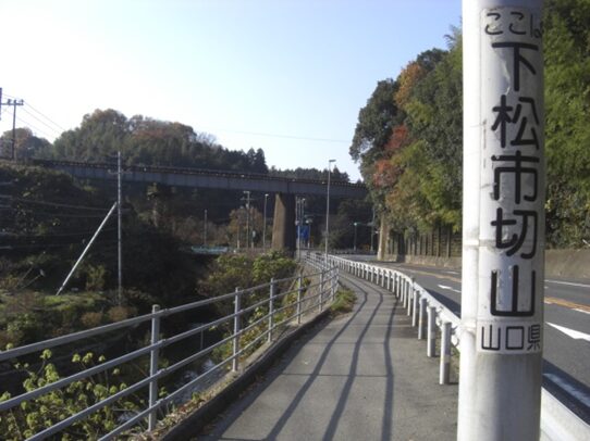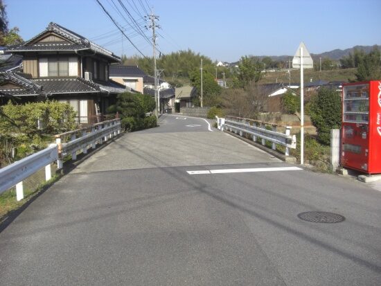 2号線を少し進んでいくと、手の込んだ周南市勝間歩道橋の南袂の旧道を左に入ります。150m程先で川を渡ります