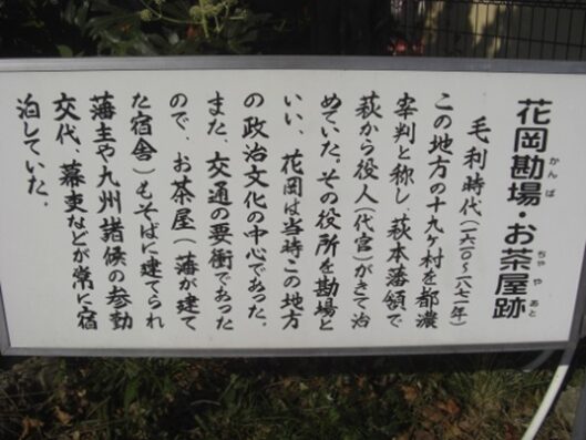 河内家には今も大名等宿泊、休憩の際の「お休み札」、「宿泊の部屋」、安政三年(1856)より約三十年間の「萬日記」、当時の「屋敷見取り図」、そのほか貴重な資料が保存されています。河内七左衛門は「御報恩の為、自力を以って相勤め、格別の御仕成御座無候」と古い記録にあります。(周南市教委)