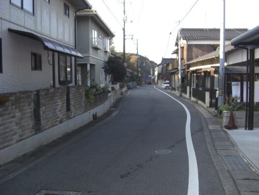左にカーブするところから振り返ると呼坂宿が一望できます
