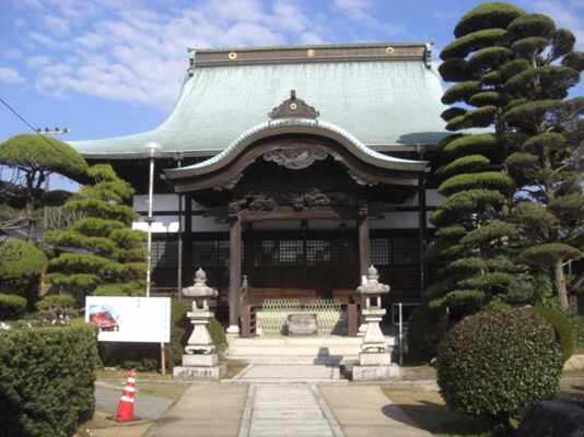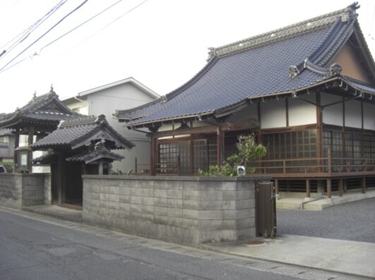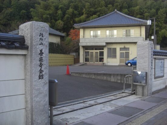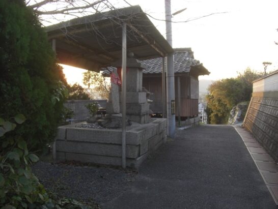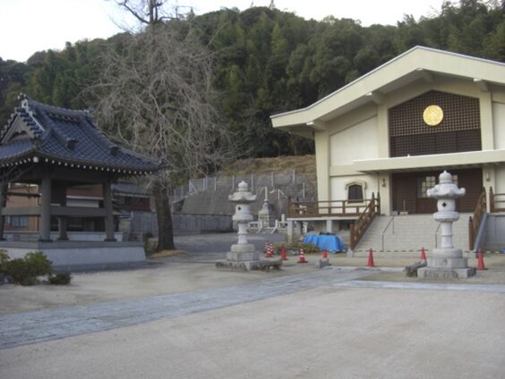 十字路を右に折れたところ右手に 真宗本願寺派萩尾山西善寺