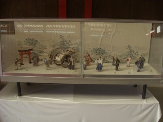 神社に秘伝の刀を保存しているとのことで、公開は年1回の祭り時であるが、折角来たのだから見せてあげようとわざわざ社務所へ鍵をとりに行って下さり、神官さんに無理に見せてあげてと頼んでくれた。非常に親切にして頂き有り難かった。
