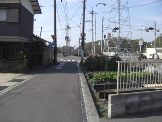 その先100m程進んだ十字路を右に折れますと、すぐに岩徳線の大江踏切を渡ることになります