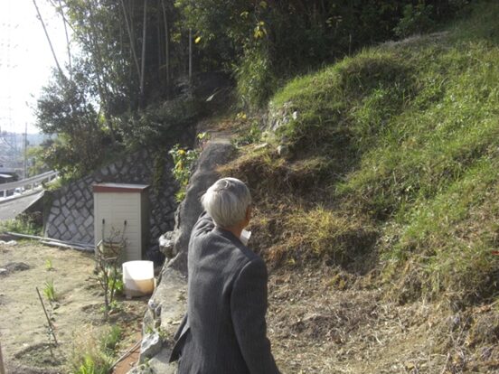 2回目は、街道とばかり思って歩いていたらおじいさんが家から出てきて声をかけていただき、旧道はこの道の上だと教えていただいた、普通に歩いていると分からない旧道を教えてもらった。ここでも地元の人から親切に声を掛けていただいた。そのおじいさんは高野山の下の笠間地区の人で、お父さんは大坂難波付近の出で関西に縁が深くよけい懐かしく話が出来た。