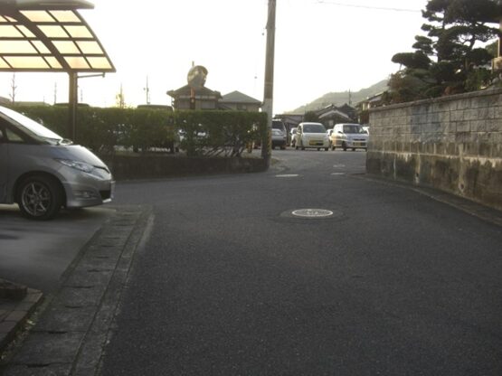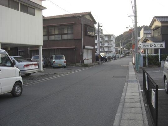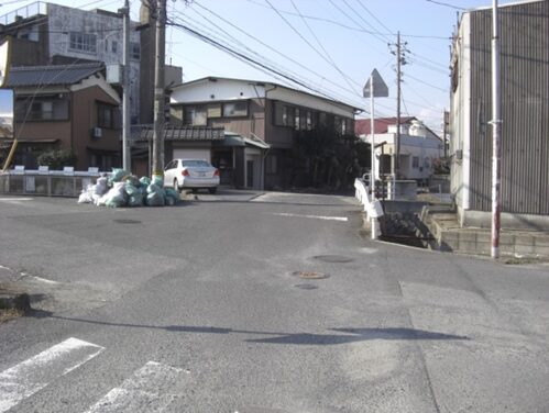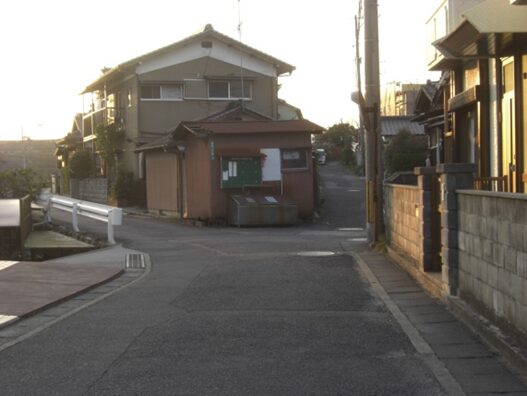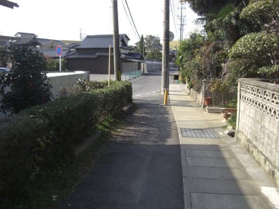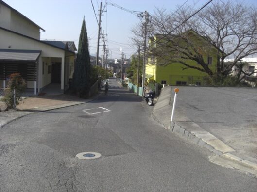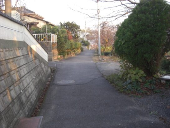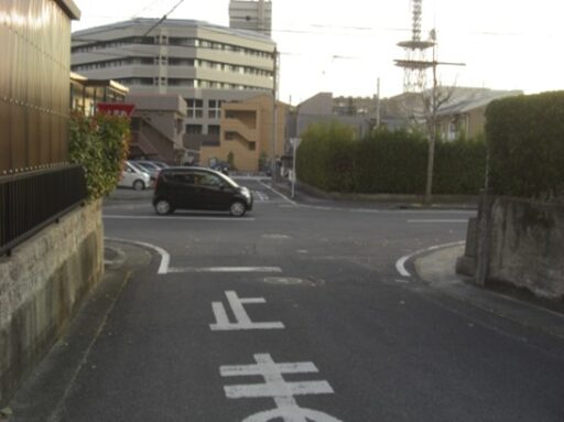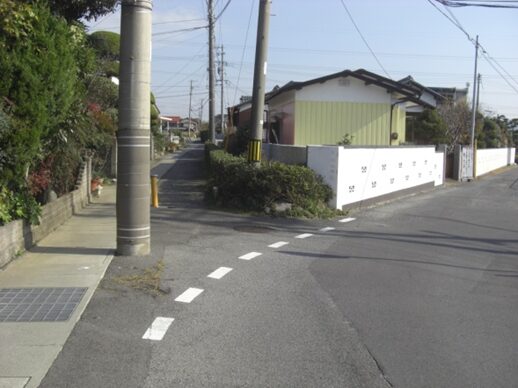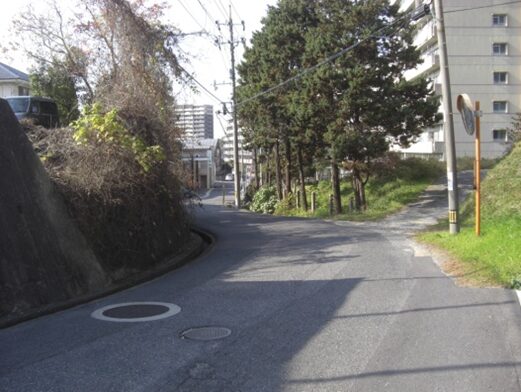 坂を上り左にカーブした先50m程で右に直角の曲がります