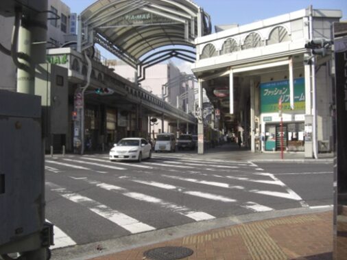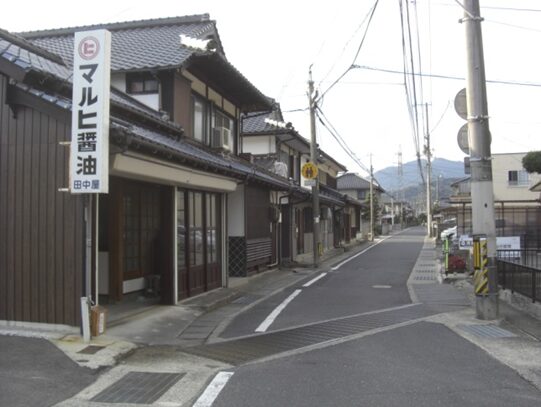 左にマルヒ醤油田中屋の前を進み、川崎の街並みを進みます
