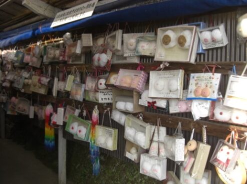 観音さんは安産にも霊験あり、乳房の絵馬が沢山供えられています