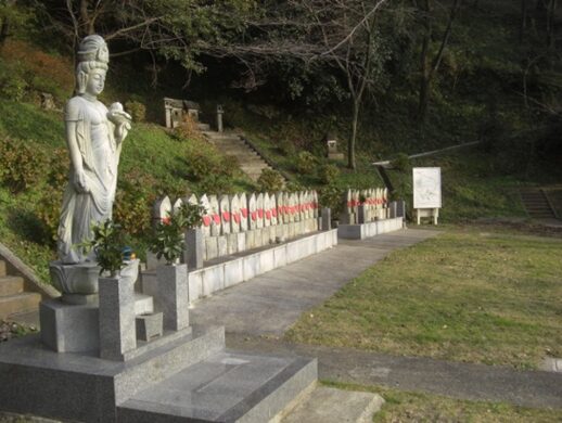 街道を130m程進むと十字路に出ます、左角に高杉レディースクリニックがあります。十字路右が永源山公園への入り口で、その十字路を左に【寄り道】をします。370m程南に進むと山陽本線が走っています、その手前右に勝栄寺があります
