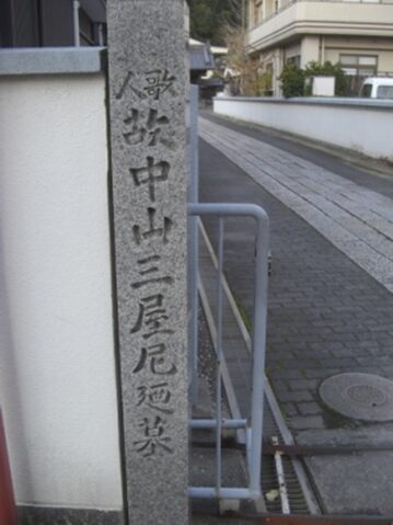 交差点のすぐ先右に 歌人胡中山三尾尼廼墓碑