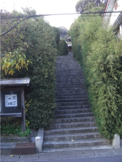 道標の辻で【寄り道】右(北)に折れて、2号線のトンネルを抜け石段を上がります